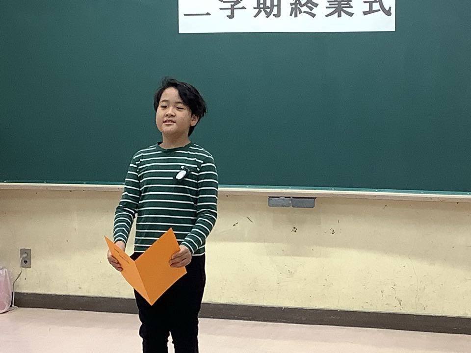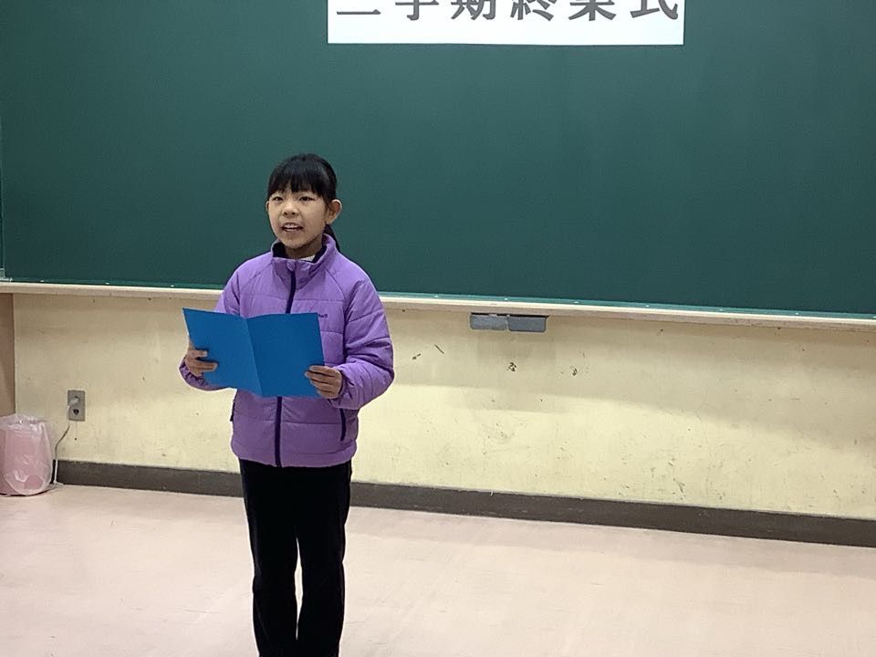 代表の人が、2学期の振り返りと3学期に頑張りたいことを発表しました。