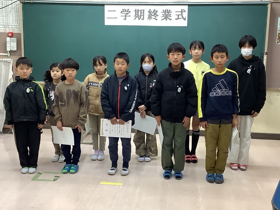 まずはマラソン大会で優秀な成績をおさめた人たちの表彰です。