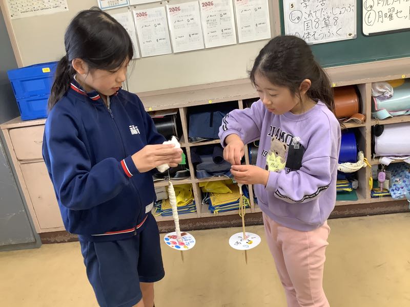 それに向けて今日はペアで糸ゴマの練習をしました。