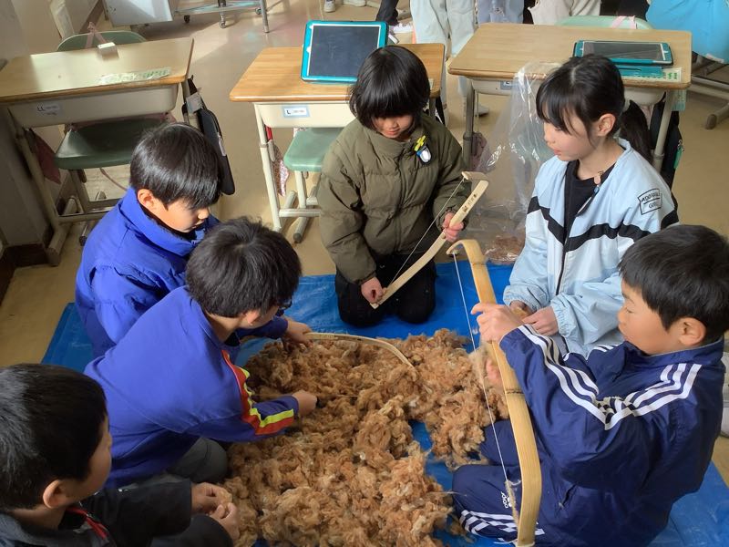 今年度初めてわたを育て、たくさんの事を学んだ3年生。来年度からわた学習が始まる2年生へ、学んだ事を伝える場を設けました。