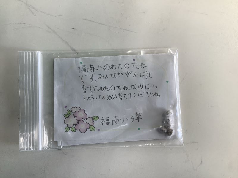 最後には3年生から、わたの種のプレゼント。とてもあたたかい時間になりました。