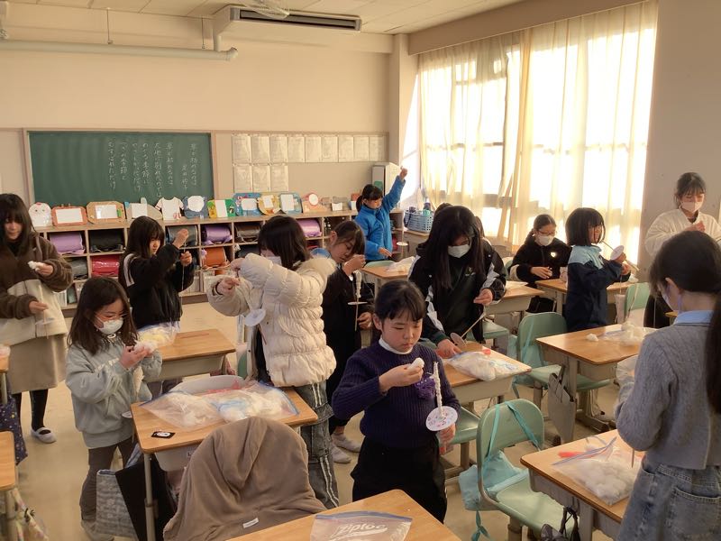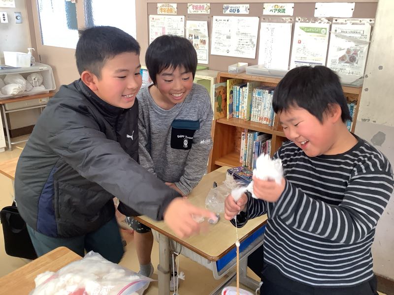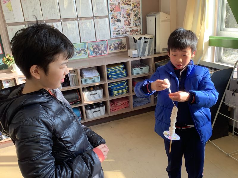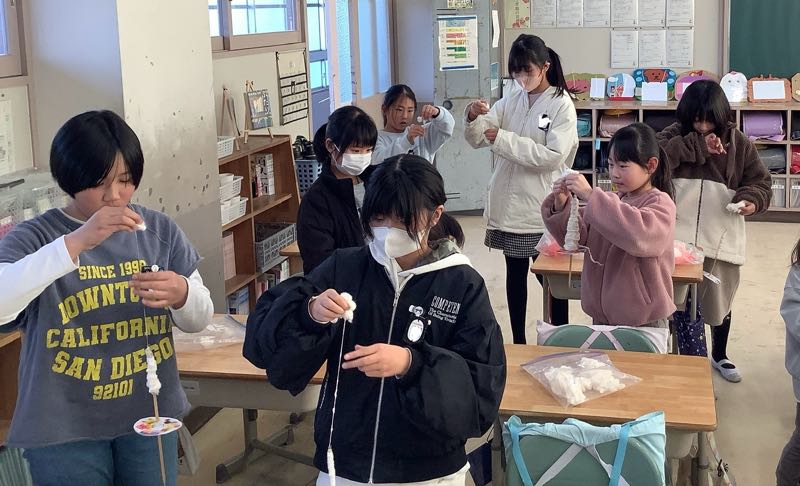 今週金曜日のわた集会に向けて、糸ごまの練習しました。3年生は糸つむぎのこつを教えてもらい、練習しました。1分間のチャレンジではお互いに応援し合いながら取り組みました。
