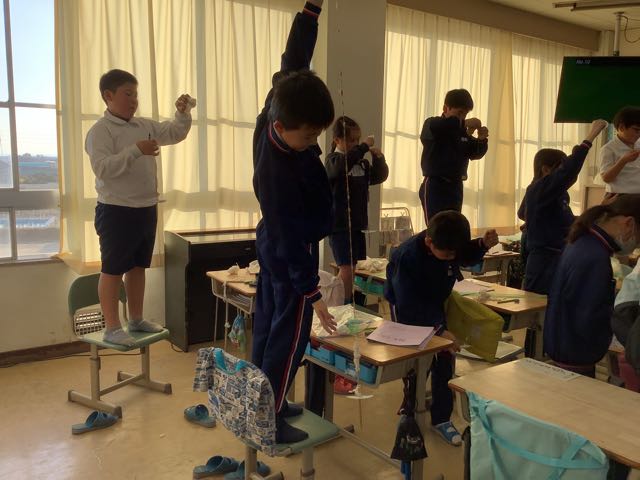 今月末にあるわた集会に向けて、糸ゴマの練習をしました。 ペアの2年生に教えてあげることや、声のかけかたも考えました。
