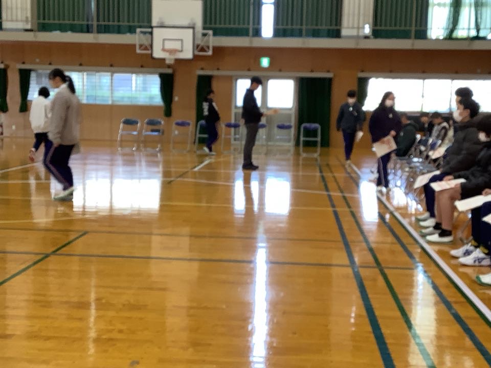 本格的に卒業式の練習が始まるのはまだ先ですが、合唱のための場所への並び方がうまくいくかどうか、位置どりを試してみました。