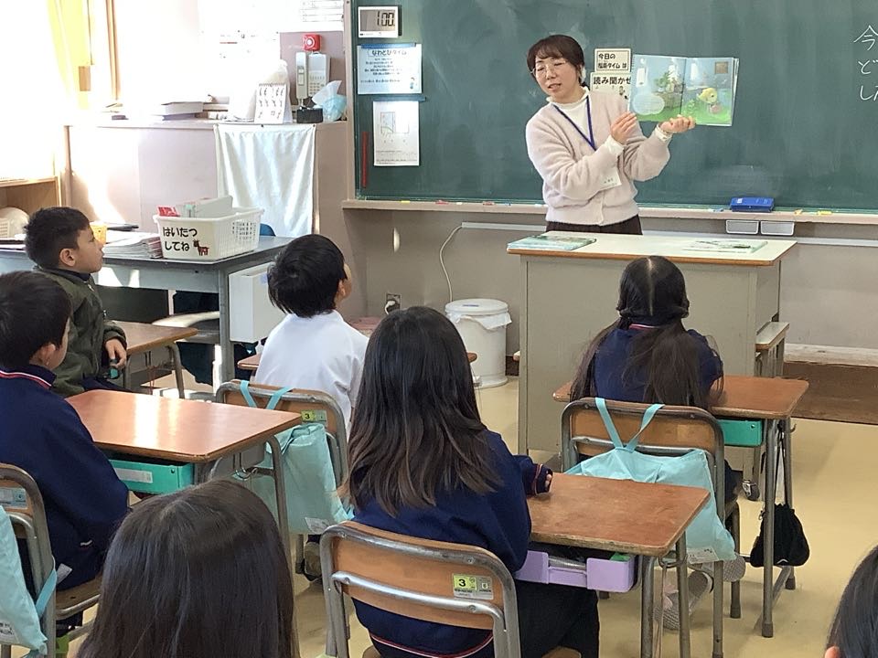 今日は図書ボランティアさんの読み聞かせの日でした。