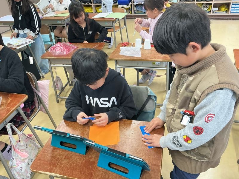 「もっとこうしたい。」「早く遊んでもらいたい。」と意欲的な振り返りがたくさんありました。これからも、みんなで楽しむために試行錯誤しながら作っていきます。