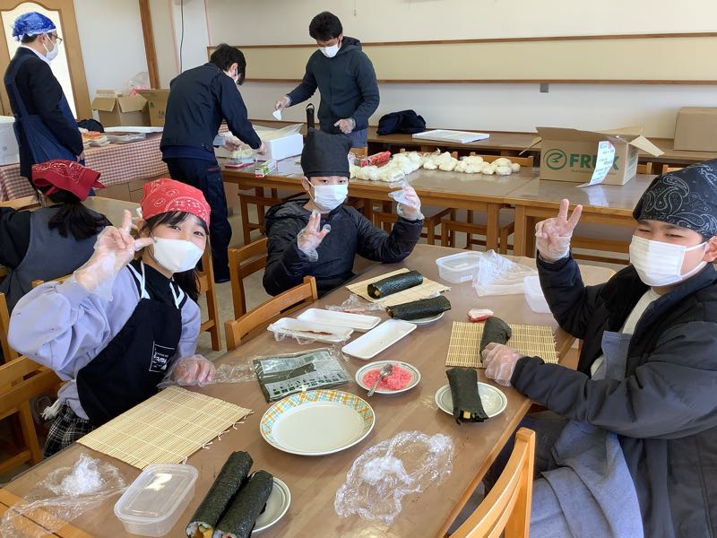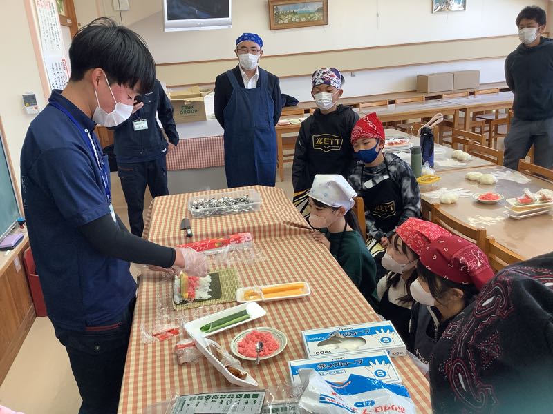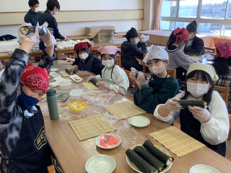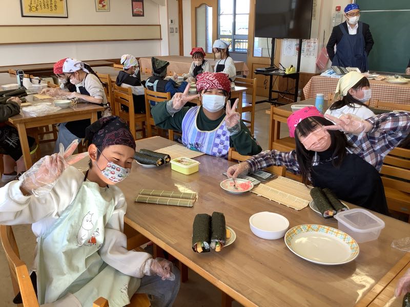「おいしい!」という声がランチルームに溢れ、巻き寿司を楽しく食べていました。