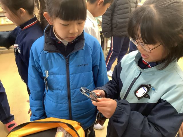 お話の後には、警察官の方が実際に使っている装備に触れさせてもらう体験活動も行いました。子どもたちは興味津々で、目を輝かせながら活動に取り組んでおり、とても楽しそうな様子でした。