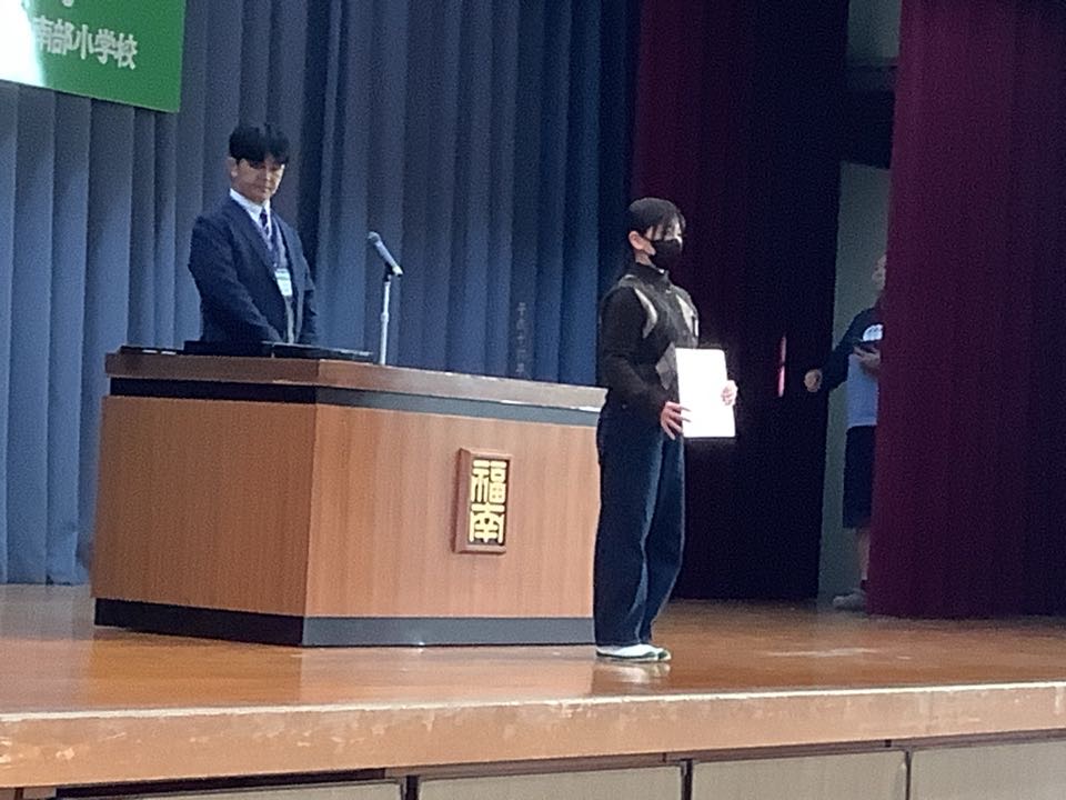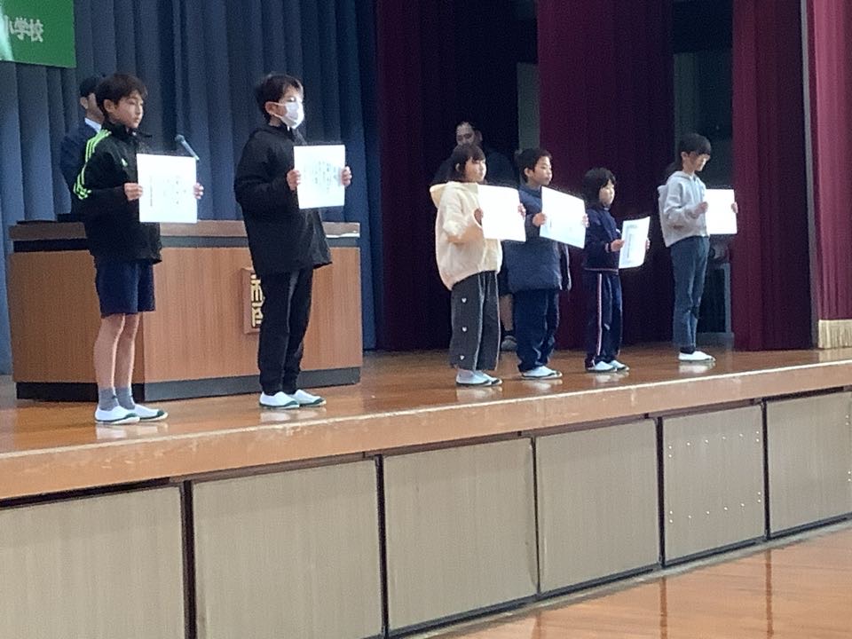 夏休みに取り組んだ作品作りの中で、防火に関するポスターと習字の表彰を行いました。