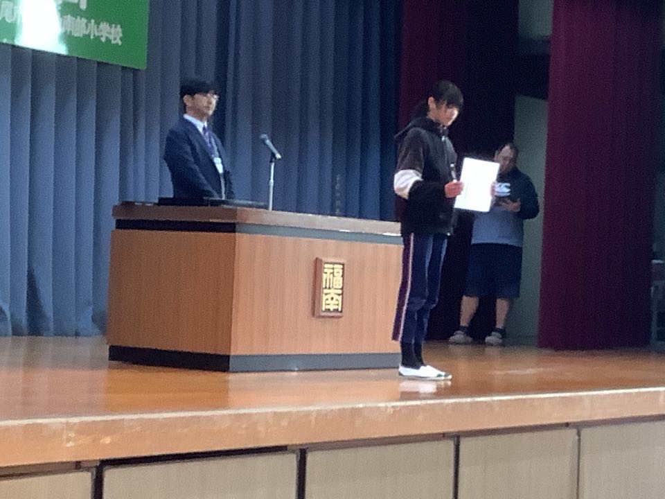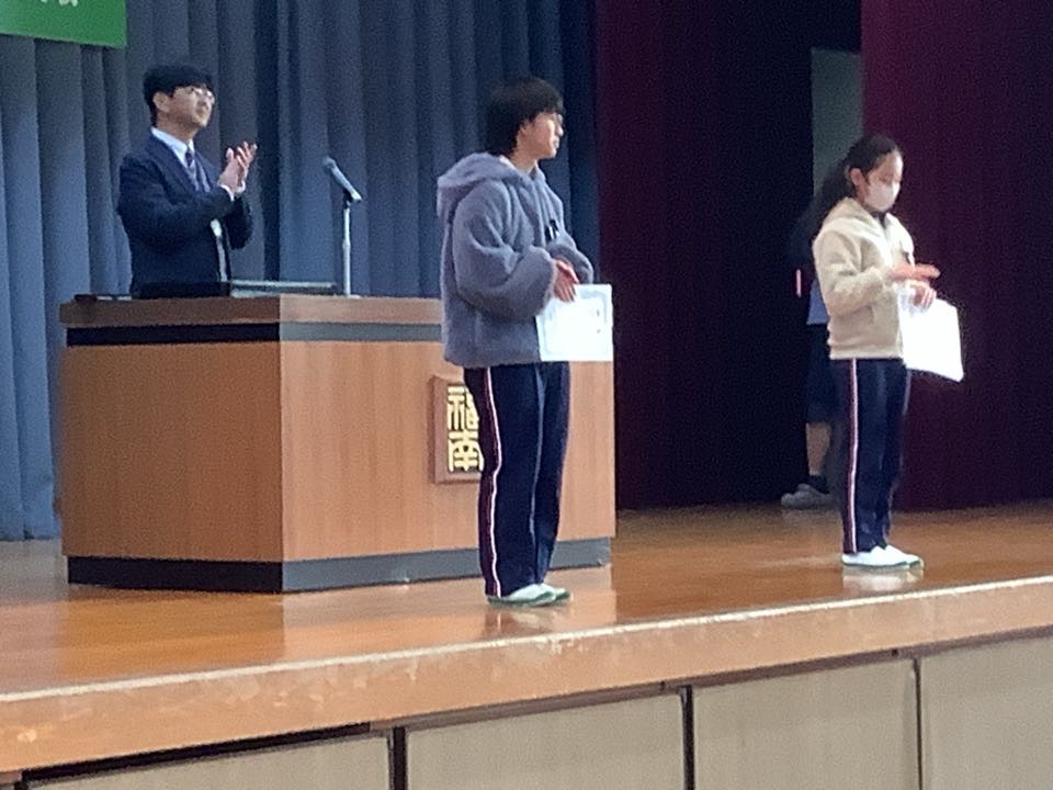 競書会で優秀な成績をおさめた人の表彰を行いました。まずは、市長賞・教育委員会賞の表彰です。