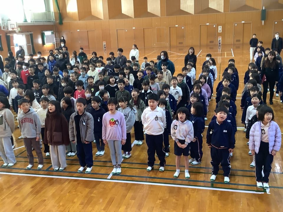 最後に1月の「今月の歌」だった「世界に一つだけの花」を全校で歌いました。