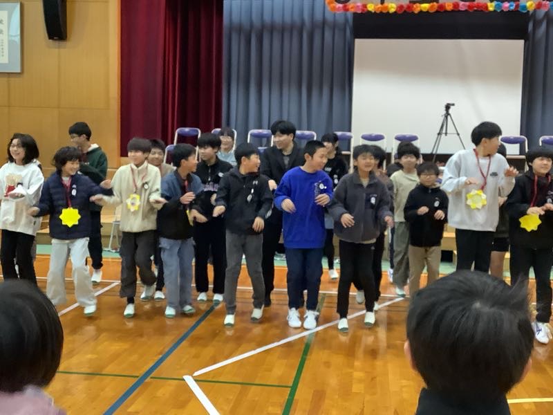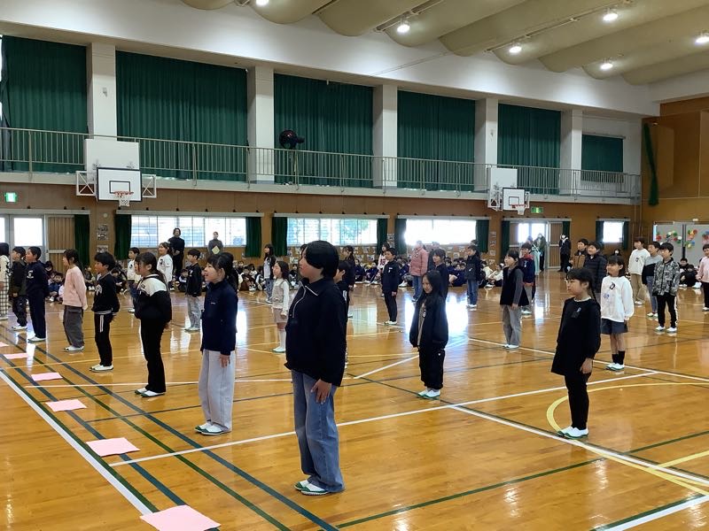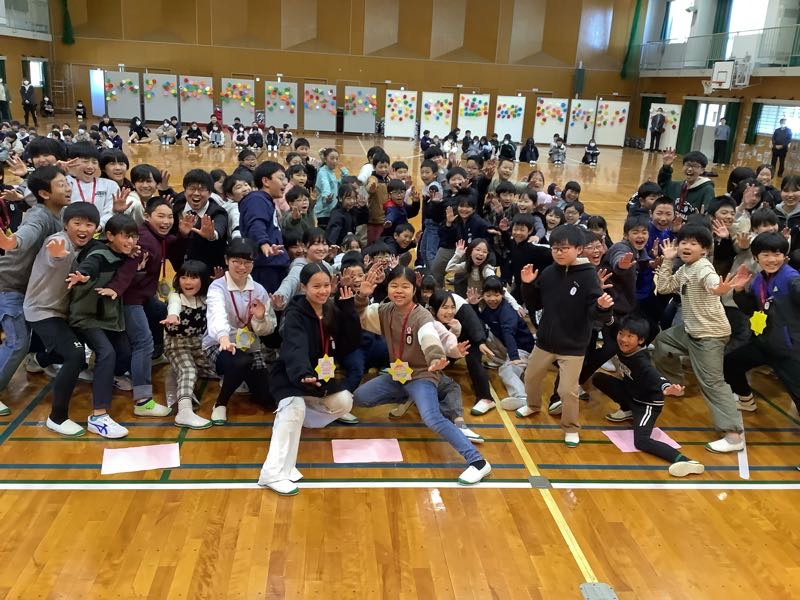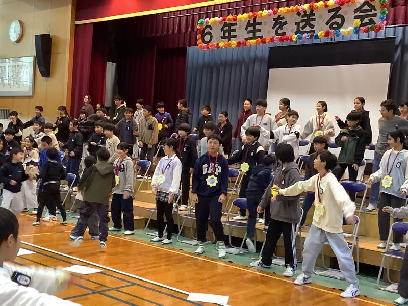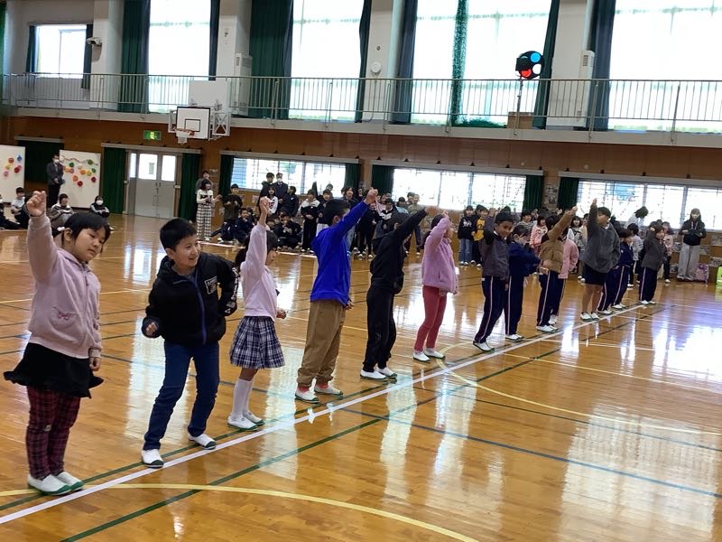 4番目は3年生。3年生は、運動会で踊ったソーラン節を発表しました。6年生も3年生の時踊ったので、自然に体が動き出すようでした。一緒に踊って、最後は一緒にポーズを決めました。