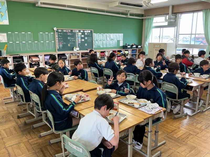 今日から給食がスタートしました。おいしい給食を食べながら、新しい仲間たちと交流を深めます!