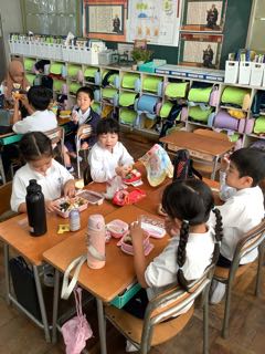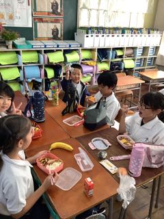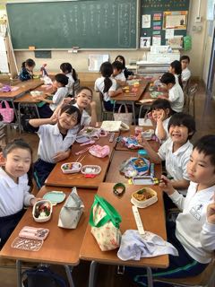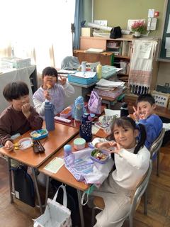 給食の放送でメニューが流れると、「ぼくはお母さんがつくったお弁当だよ」とみんな得意気です。