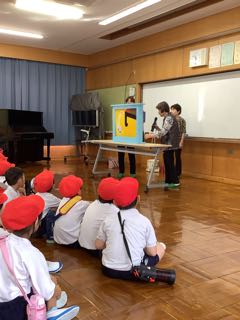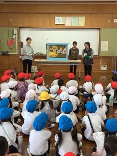 今日は、みんなが楽しみにしている大型紙芝居の日です。