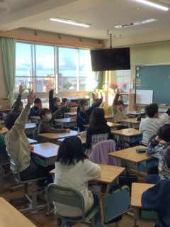 マヨネーズを食べたことがありますか?の問いにほとんどの子が手を挙げました。何を食べた?の問いにはツナマヨやブロッコリーなどと答えました。