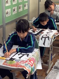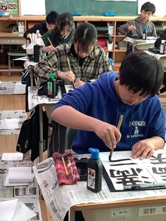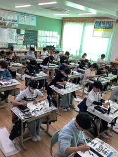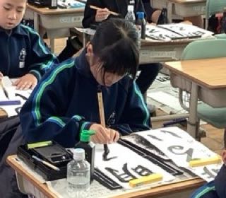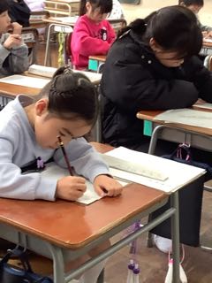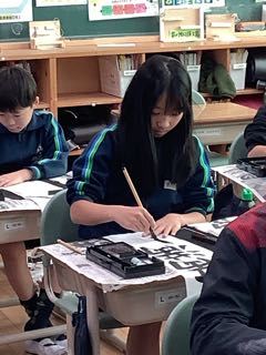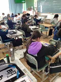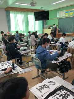 今日は競書会です。これまで授業でたくさん練習してきた成果を発揮しました。