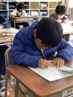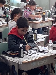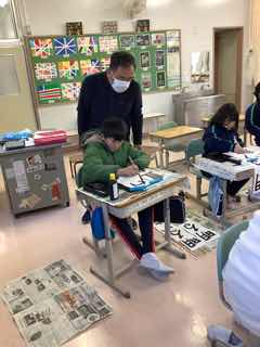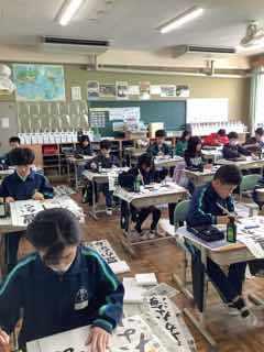 3年生は初めての毛筆です。最初は苦労した筆づかいにも慣れてきました。