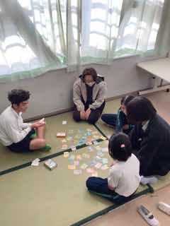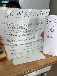 昔遊び発表会では、お手玉、紙風船、かるた、すごろくについて、その歴史を調べ、説明してくれました。また、遊び方をわかりやすく教えてくれて、先生たちと一緒に遊ぶことができました。とっても楽しい時間でした。