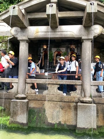 清水の舞台から下を見下ろし、音羽の滝の水を飲みました。