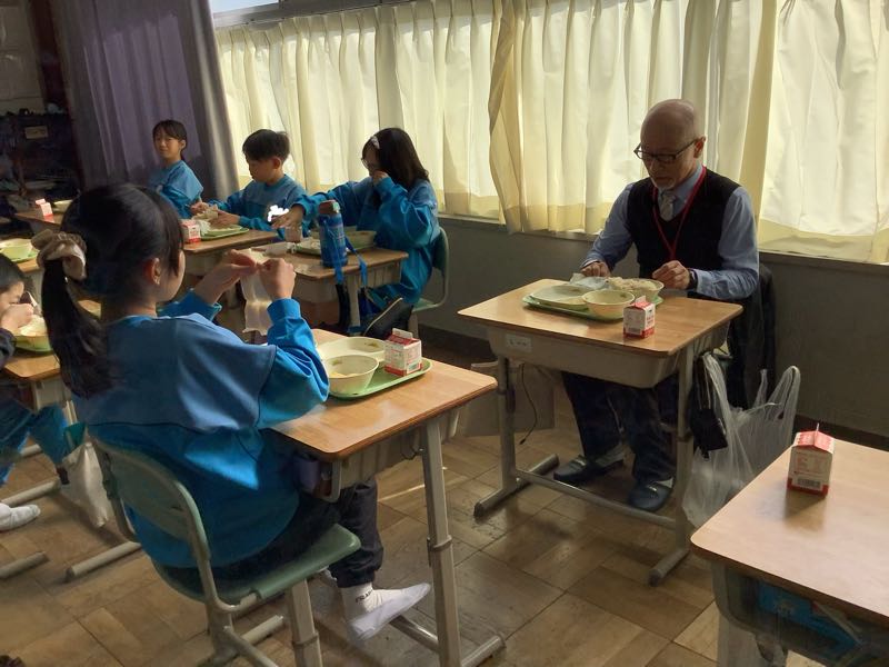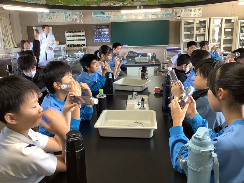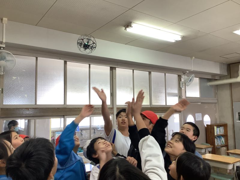 給食も一緒に食べ、給食後にはおもしろ理科実験として、ドローンに似た機械をみんなで触ったり、飛ばしたりして楽しみました。