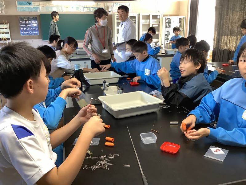 11月7日(金) デンソーの方が来てくださり、デンソーサイエンススクールを行いました。磁界の模型を1人1つ用意してくださり、磁石の向きを変えることで、磁界が作り出す模様が変わり「おお〜」とびっくりでした。