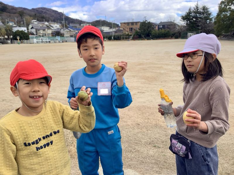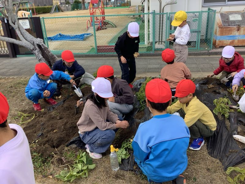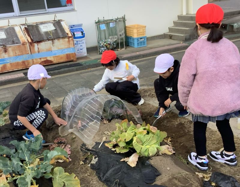 2学期に植えて育てていた冬野菜の様子を見にいきました。中には収穫できる野菜もあって、実った野菜に喜ぶ子供達の姿が見られました。まだ収穫していない野菜も収穫が待ち遠しいです。