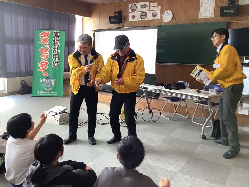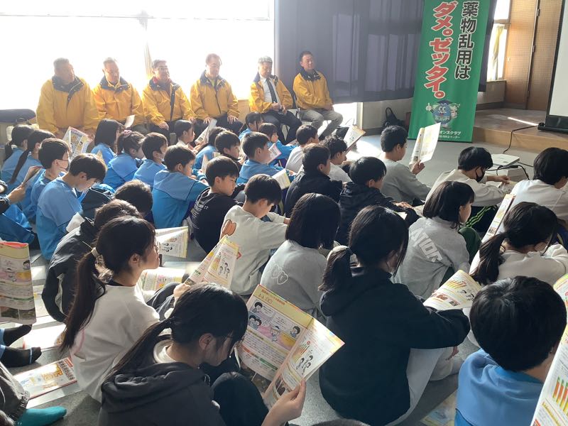 西尾ライオンズクラブ7名の方々をお招きし、薬物のレプリカを見せていただいたり、薬物の恐ろしさをお話ししていただきました。「今日教えていただいた薬物乱用は、ダメゼッタイ”の言葉をずっと忘れず、薬物で自分の人生を台無しにしないようにします。」「オーバードーズが10代に多いのに驚きました。もし、誘われても強い意志で断ります。」などの感想を述べていました。