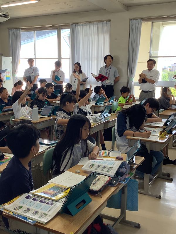 講師の先生をお迎えして、5年生で算数の授業を行いました。台形の面積の求め方について学習しました。