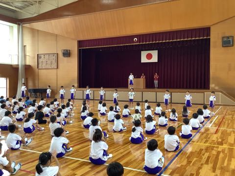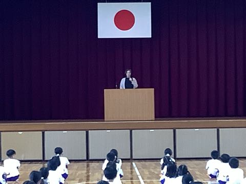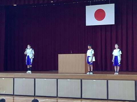 今日の全校集会は前期のふり返りと後期の児童会役員、委員長や学級委員の任命がありました。