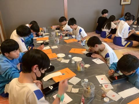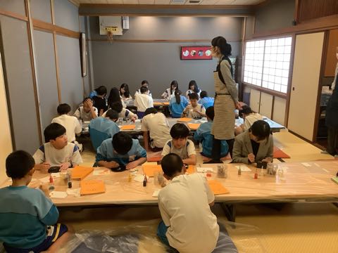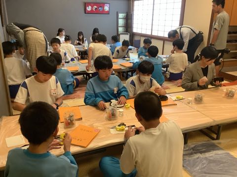 絵付け体験です。 事前にデザインしたものを写して、色付けをしました。