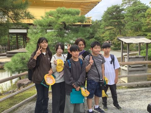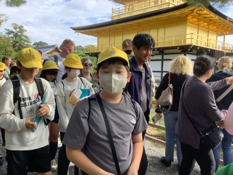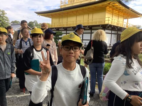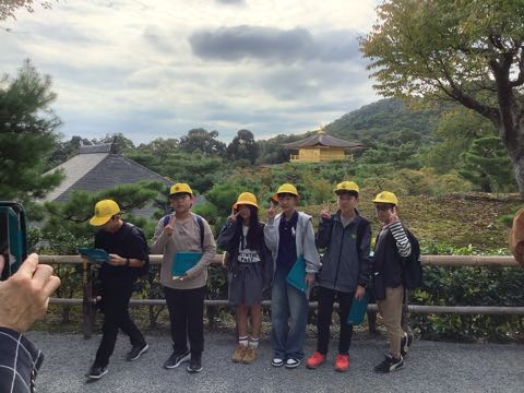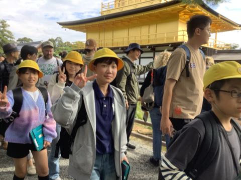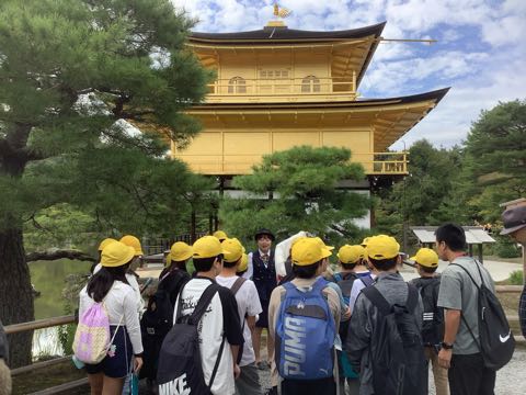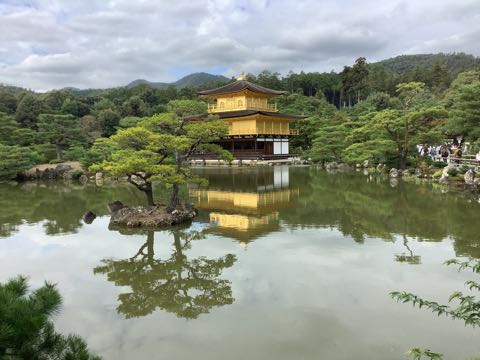 最後の見学地、金閣寺です。 風が穏やかで金色に光る金閣が池に映ってきれいでした。