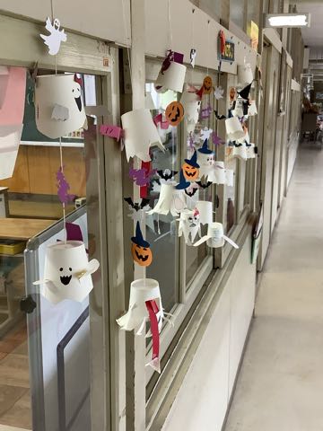 学校の中にハロウィンを思わせる飾りや作品がたくさんあるからでしょうか。