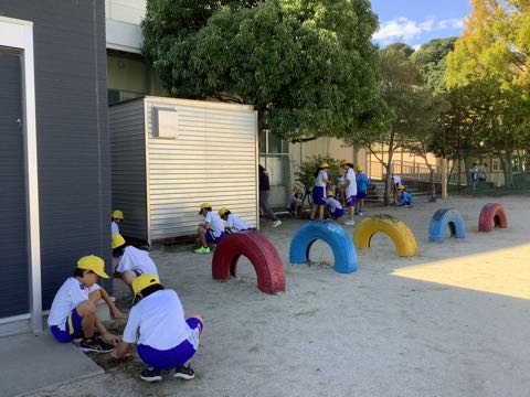 休み時間には、明日の授業参観に向けて砂場に山を作る5年生や大谷選手からもらったグローブでキャッチボールをする子たちなどで遊ぶ姿が見られました。