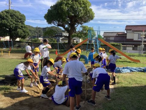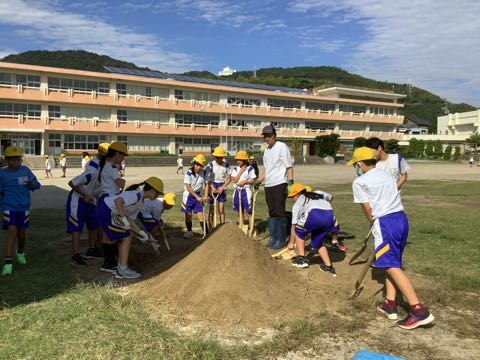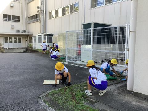 今日は全校草取りが行われました。暑さや雨でなかなかできませんでしたが、およそ1か月ぶりに行い、学校をきれいにしました。