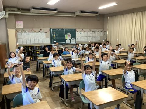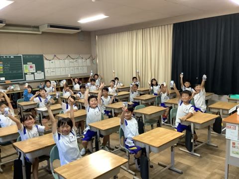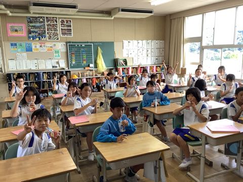 草取り後は、PTA親子奉仕活動で用意していたジュースを飲みました。学校がきれいになりました。ありがとう!