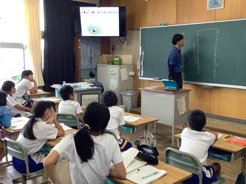 4年生は国語の課題決定の授業を、6年生は東幡豆小クイズを行っていました。