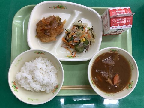 ご飯 牛乳白身魚の野菜あんかけ元気サラダ豚汁