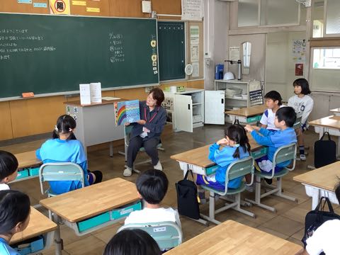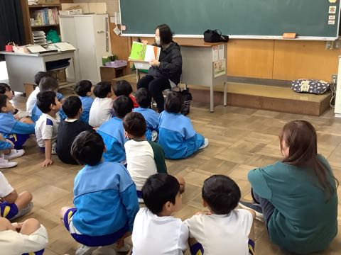 今朝は図書ボランティアさんによる読み聞かせがありました。