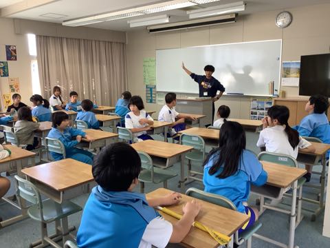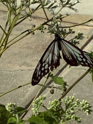 午後1時過ぎ、給食の時間の終わりにアサギマダラが飛来しました。