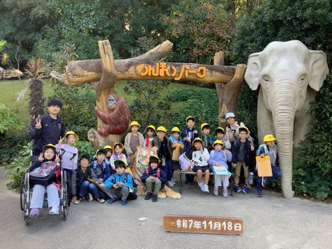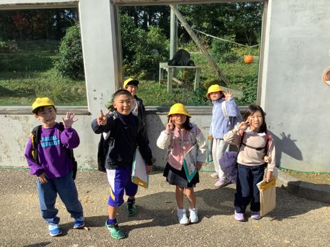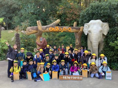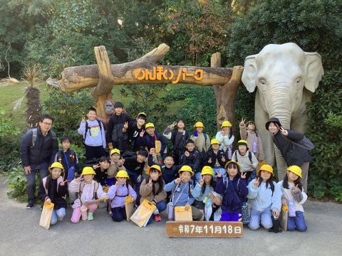 今日は1、2、3年生で校外学習です。のんほいパークに来ました。