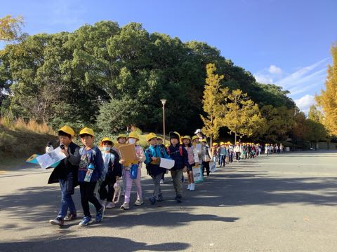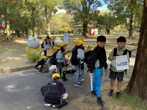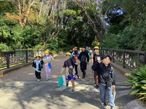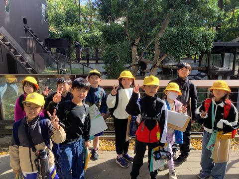 班ごとに分かれて動物を観察します。班は、1〜3年のたてわり班です。3年生が班長として活躍しています。