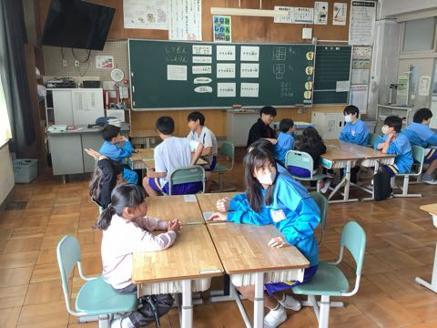 今朝の朝学習はやまびこタイムでした。異学年交流(同じ階の隣の学年)で行いました。