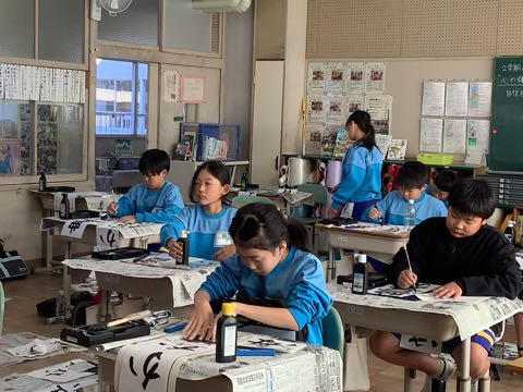 5年生は来週ある競書会に向けて、最終の仕上げに入っていました。