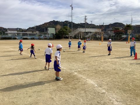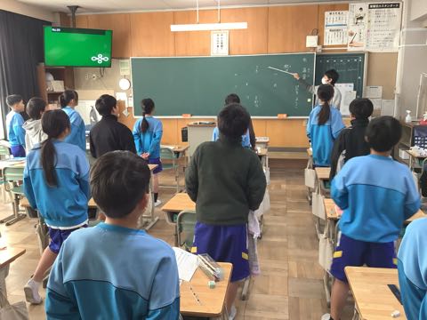 5年生は国語科で詩を、1年生は体育科でサッカーの授業を行っていました。