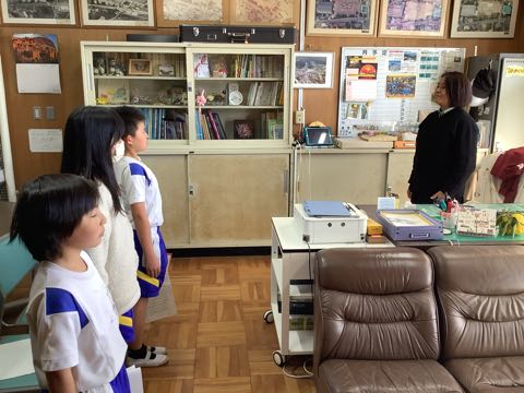 今日は校長室にて…。 今、2年生は「九九の検定」を行っています。午前中は3名来室し、合格しました。