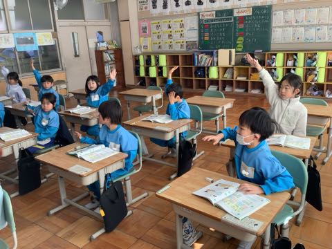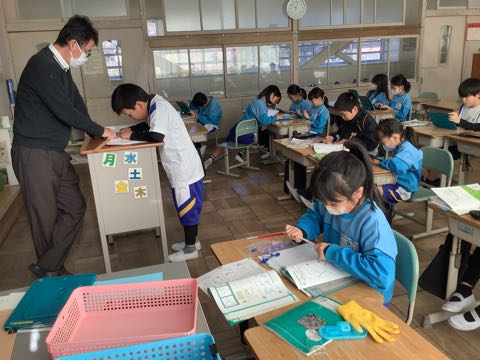 6年生と4年生は国語の授業、3年生と1年生は算数の授業で、集中して頑張っていました。