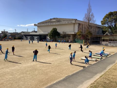 寒さも少しやわらいで、外遊びをする子も大勢いました。