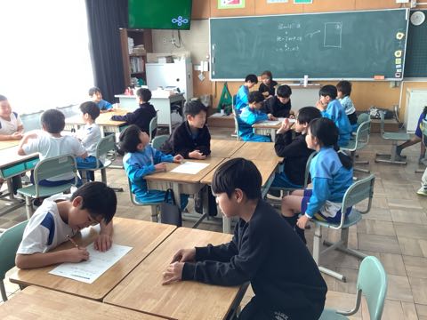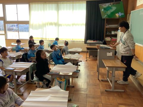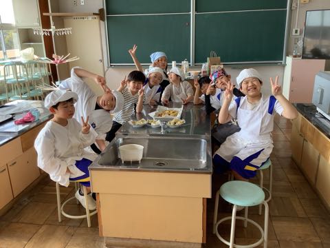 今日の授業は「凧」、「かるた」や「鬼まんじゅう」づくりがありました。凧はクレヨンでデザインをして、かるたは東幡豆をテーマにして読み札のアイデアを出していました。さつまいもは学校で収穫したものです。