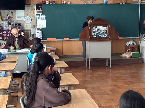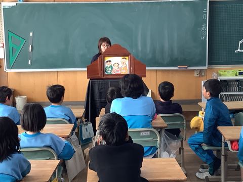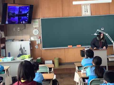 朝は図書ボランティアさんによる読み聞かせ(上学年)でした。